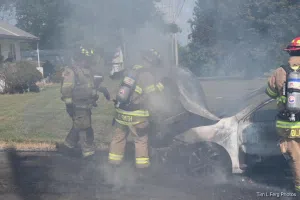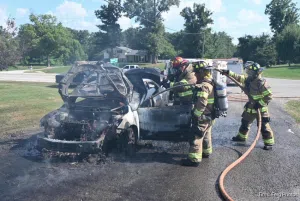 The car was fully engulfed in flames upon the arrival of the Centralia Fire Protection District. The vehicle was destroyed.