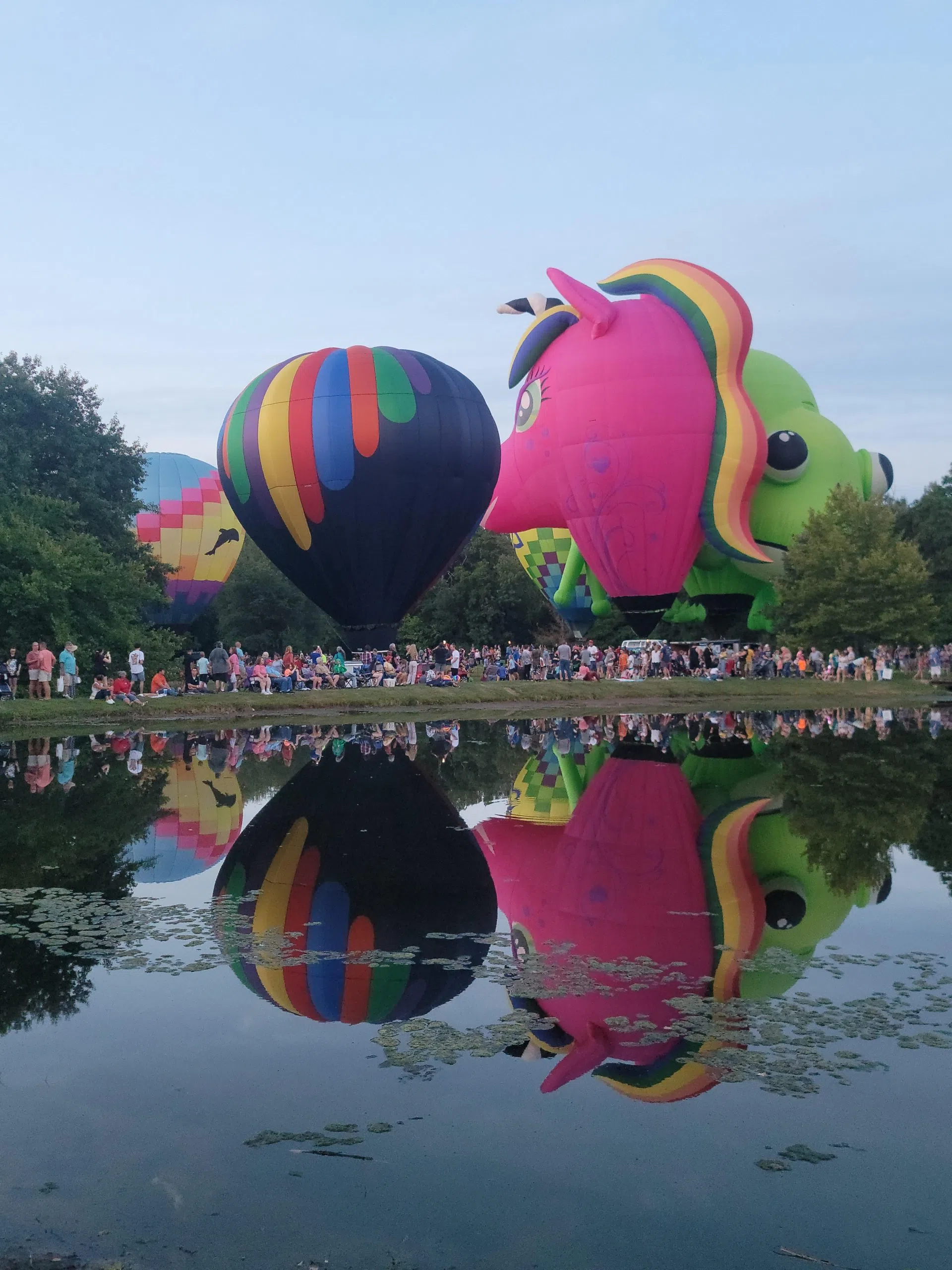 Balloon preparing for the Friday night glow reflect into Catfish Pond. Photo by Pat Hodges.