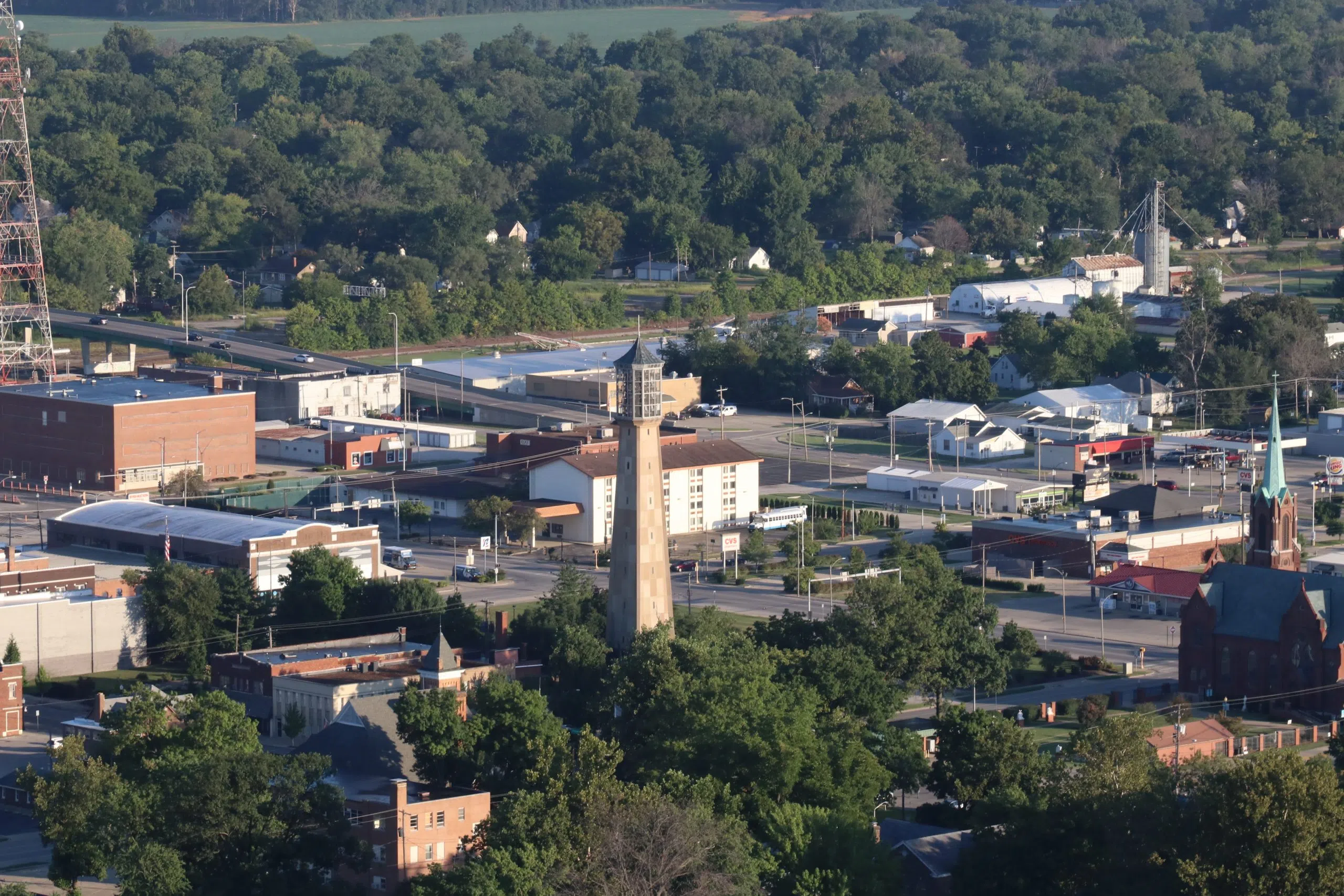 Looking down on the Bell Tower and downtown Centralia during the balloon flight. Photo by Pat Hodges.