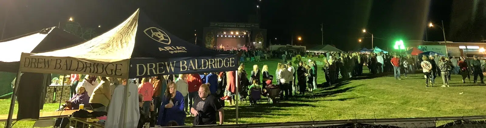 A two-block field near Patoka Village Hall in downtown Patoka was fenced in and transformed into the festival grounds. A large stage anchored the festival that included plenty of space for fans to stand or enjoy the music in their lawn chairs. Food and refreshment booths lined the side of the festival site.