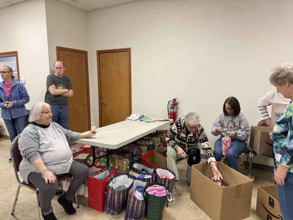 Thirty-two DAR members and friends recently gathered to put together the gift bags.