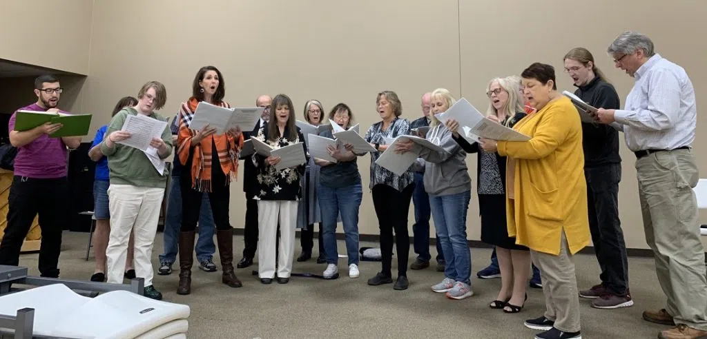 Part of the Salem Community Choir rehearses prior to the Christmas Concert Friday and Saturday nights. Photo by Bruce Kropp.