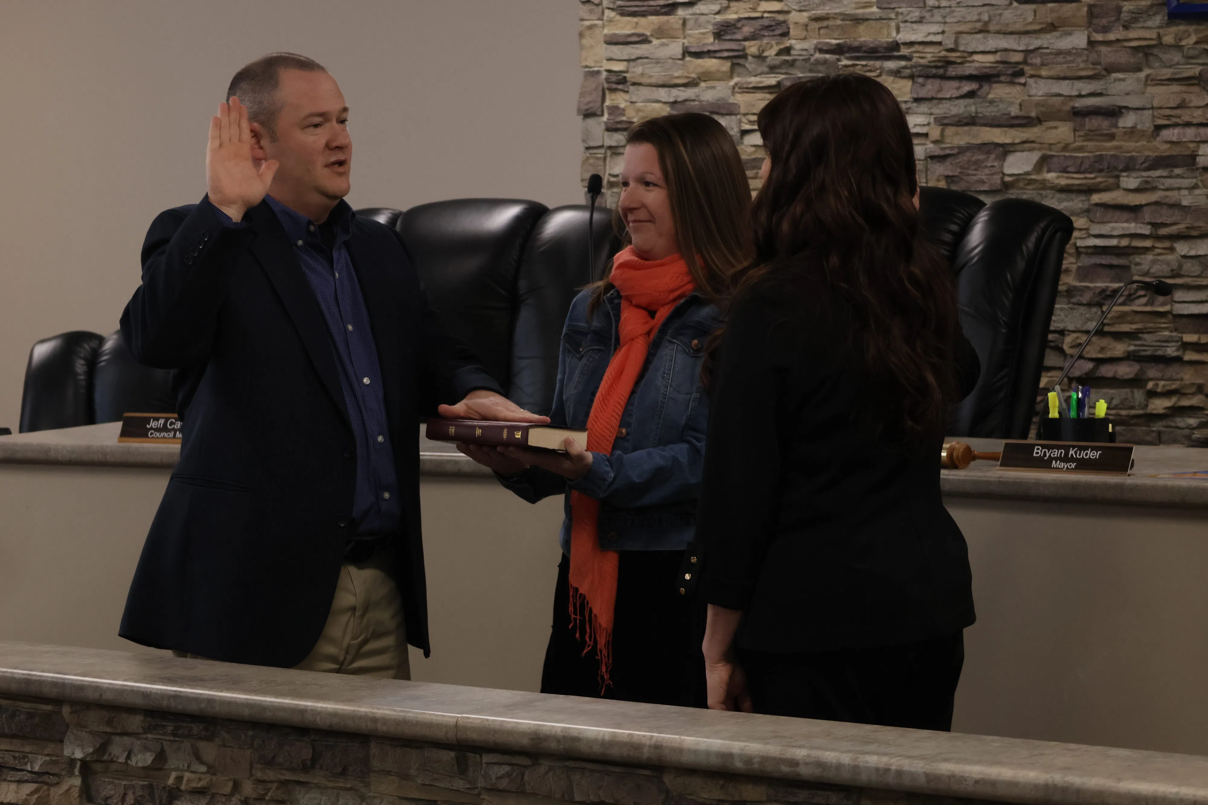 After being sworn in, Mahle thanked the his family, the staff at City Hall, and the audience in attendance. He said he plans to “hit the ground running” next Tuesday when he officially begins working as city manager.