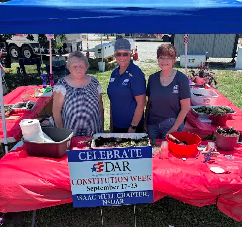 One of the education stations included the Daughters of the American Revolution (DAR), which is celebrating Americas 250th anniversary. DAR was giving out potted plants with care instructions, and lineage sheets. The group had a sign showing all the fallen patriots buried in Marion County. Julie Barns, DAR past regent, explains comparison behind the plants and lineage.