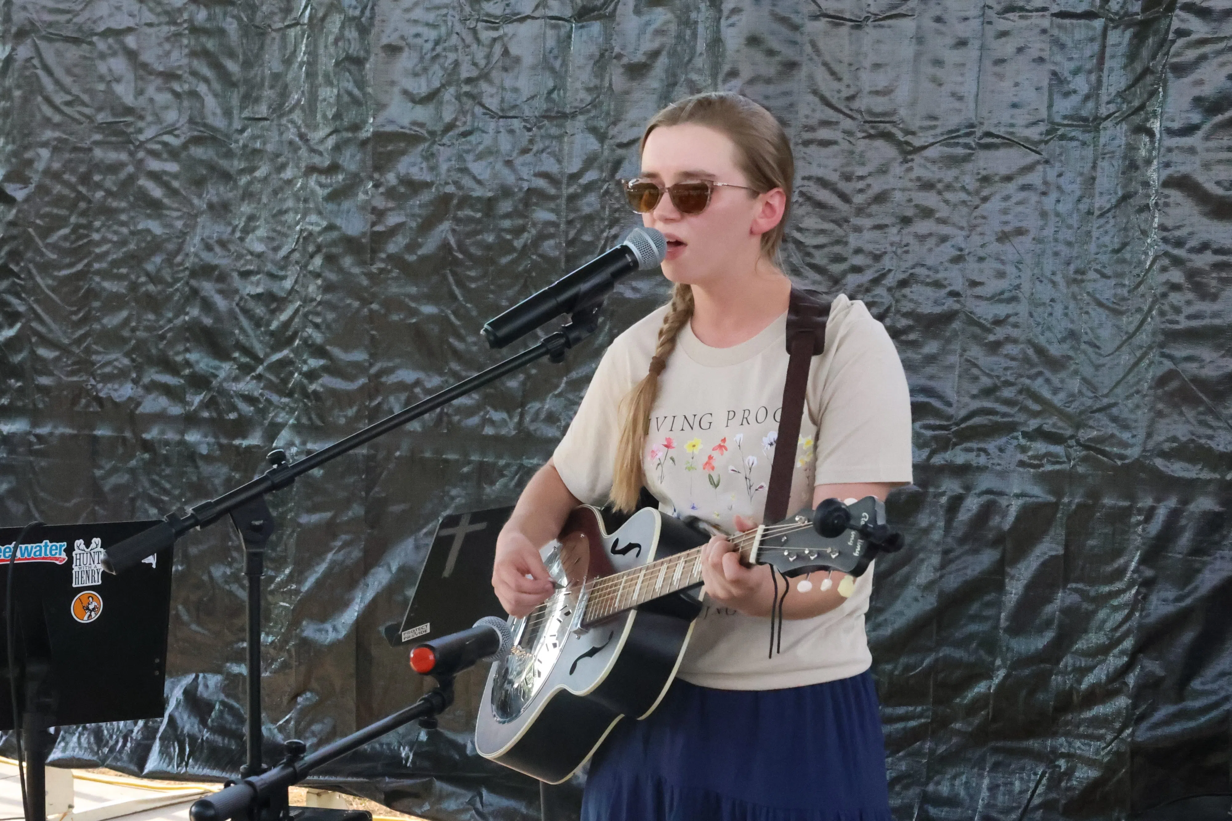 Her dad, Andrew, won the open competition. He also sang as his 12-year-old son Silas played drums to the son ‘God Is Not Dead’ in a Junior Division Entry.