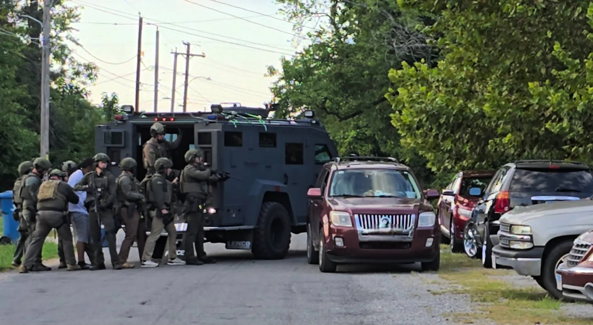 The Mt. Vernon Police/Jefferson County High Risk Team executes a search warrant looking for weapons used in a Thursday night shooting. Photo: Mt. Vernon Police Department.
