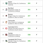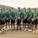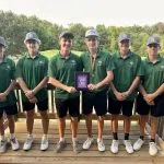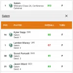Salem junior Landen Maxey shot a career low 5-under 67 leading the Salem Wildcats to a one stroke team victory over Red Bud 312-313. Maxey also won the individual title by 9 shots over Sandoval’s Beau Chapman (76) and Sawyer Wilkerson of Benton. Centralia freshman Gaige Donoho was 8th overall with his 78.