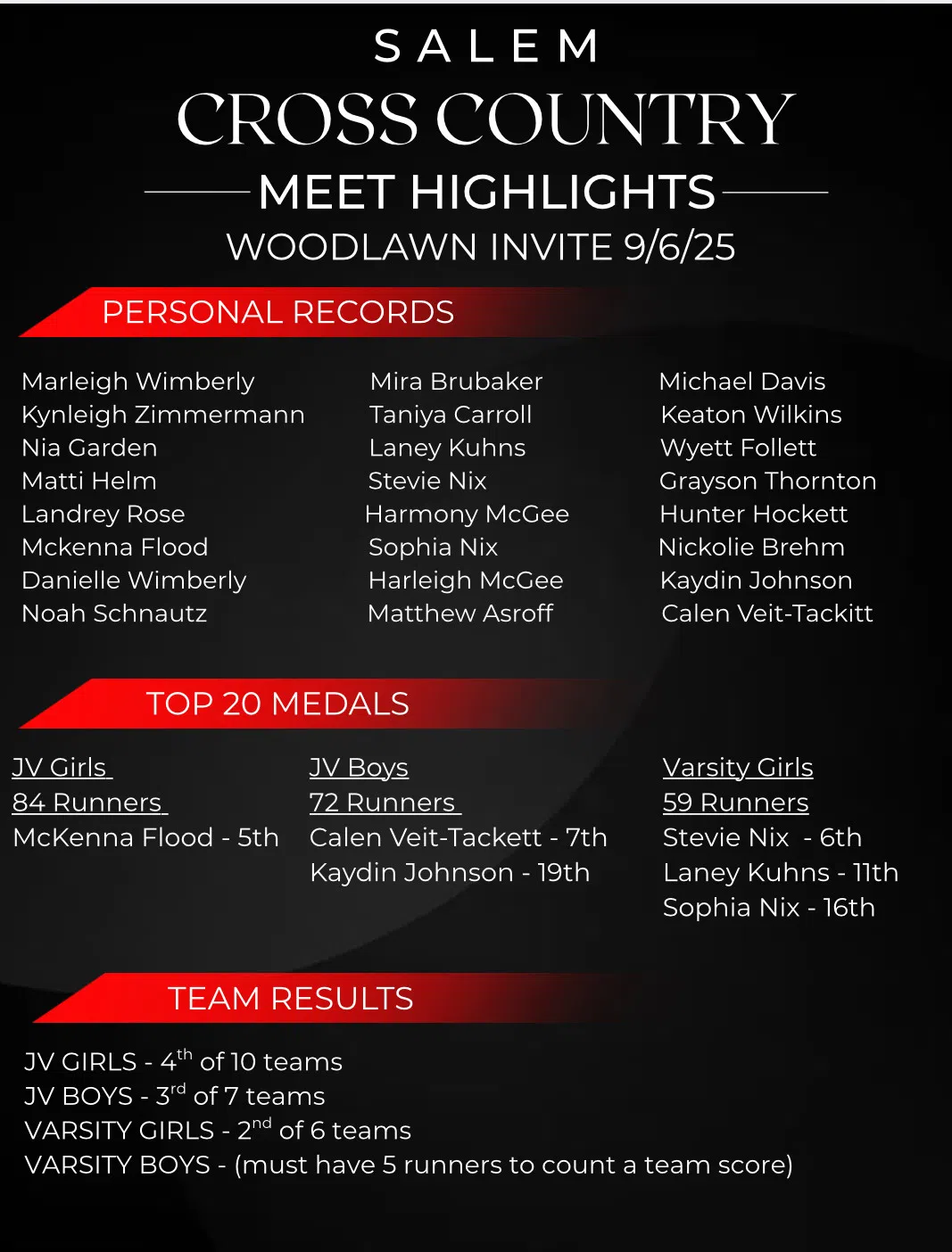 The Franklin Park cross country season opened up Saturday at Woodlawn.  The varsity girls were 2nd overall.  Stevie Nix was 6th with Laney Kuhns and Sophia Nix also getting top 20 medals.