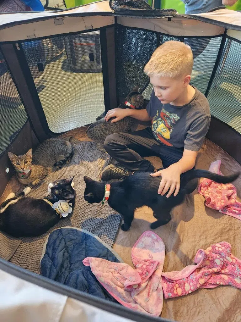 Children were able to interact with animals such as these cats at the pet fair. Photo by Bruce Kropp.