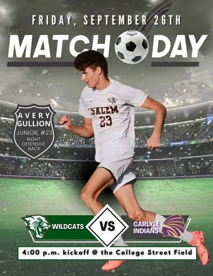 The 11-2 Salem Wildcats soccer team will host Carlyle today at 4pm at the Salem Soccer Complex.  The Wildcats have not lost at home this season, but are coming off a loss at Columbia snapping their 11-game win streak.  They try to start a new one this afternoon.