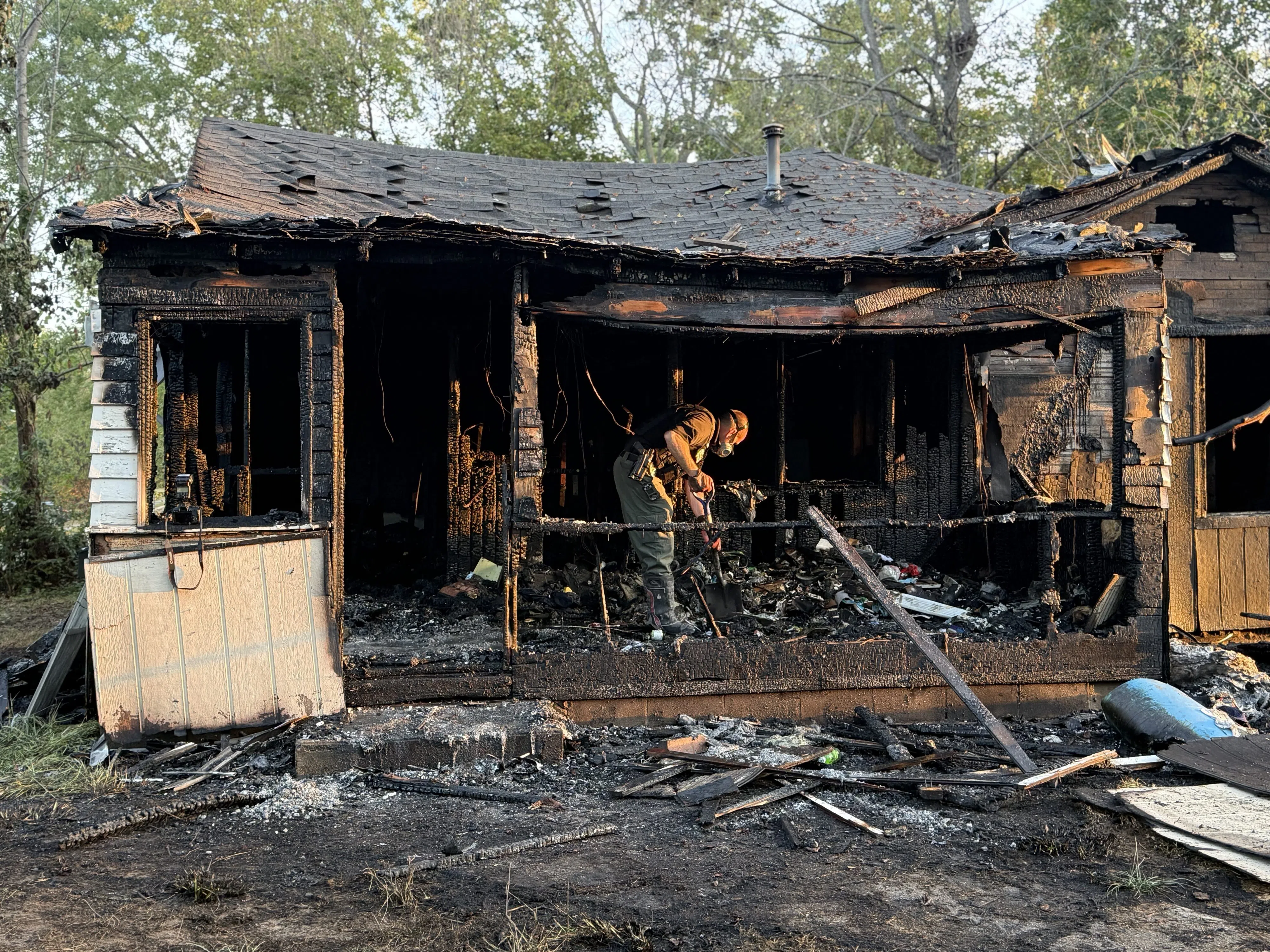 “The initial report we had was that a neighbor called who had heard a loud crash and seen the front porch of this home was fully engulfed in flames,” Fulton said. “On arrival, we found that the house was fully involved. We pulled a couple of large lines and knocked it down pretty quickly. The house has no utilities, no electricity to it or anything like that, so we have the State Fire Marshal here investigating the cause and origin.”