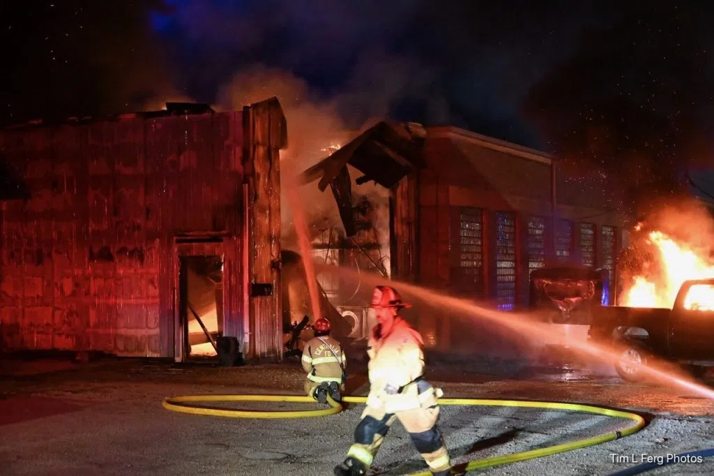 Centralia City Firefighters say the fire was discovered by Trevor Henson who was in the process of moving into the apartment. He found the fire inside the warehouse. Henson tried to fight the fire was a hose, but the fire spread rapidly and the building along with a pickup truck and a trailer parked outside were fully engulfed when firefighters arrived on the scene. The building contained vehicles and several accelerants.