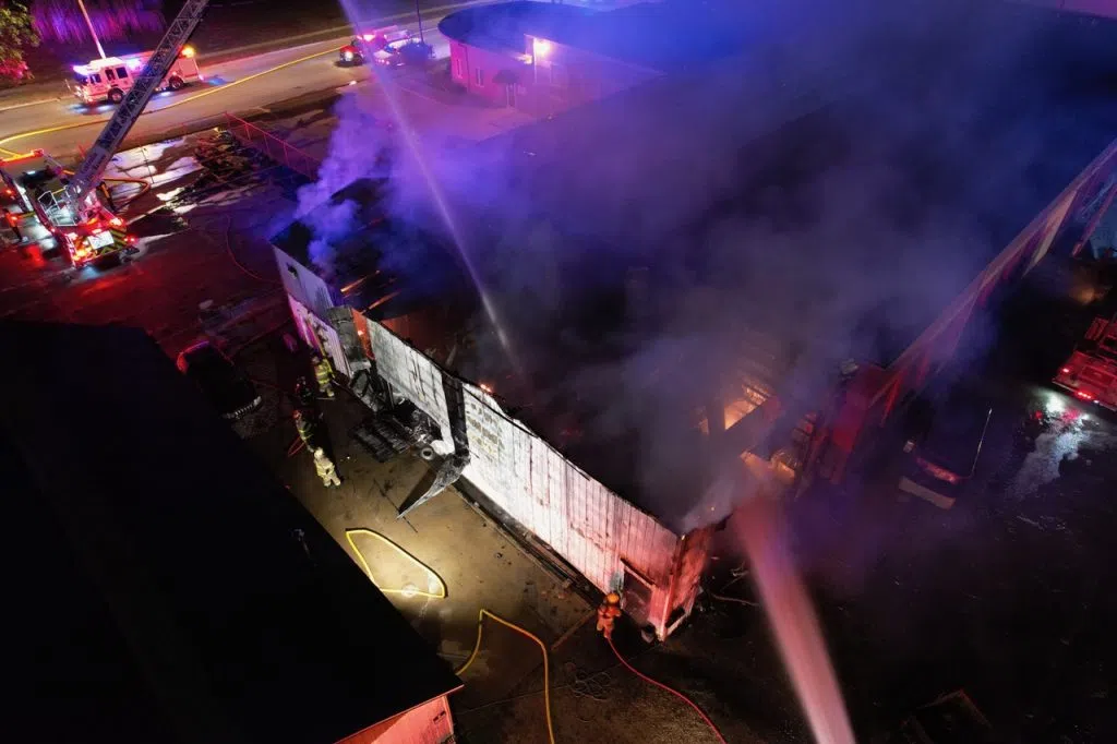 Overhead view of the warehouse fire. Photo by Tim Ferguson.