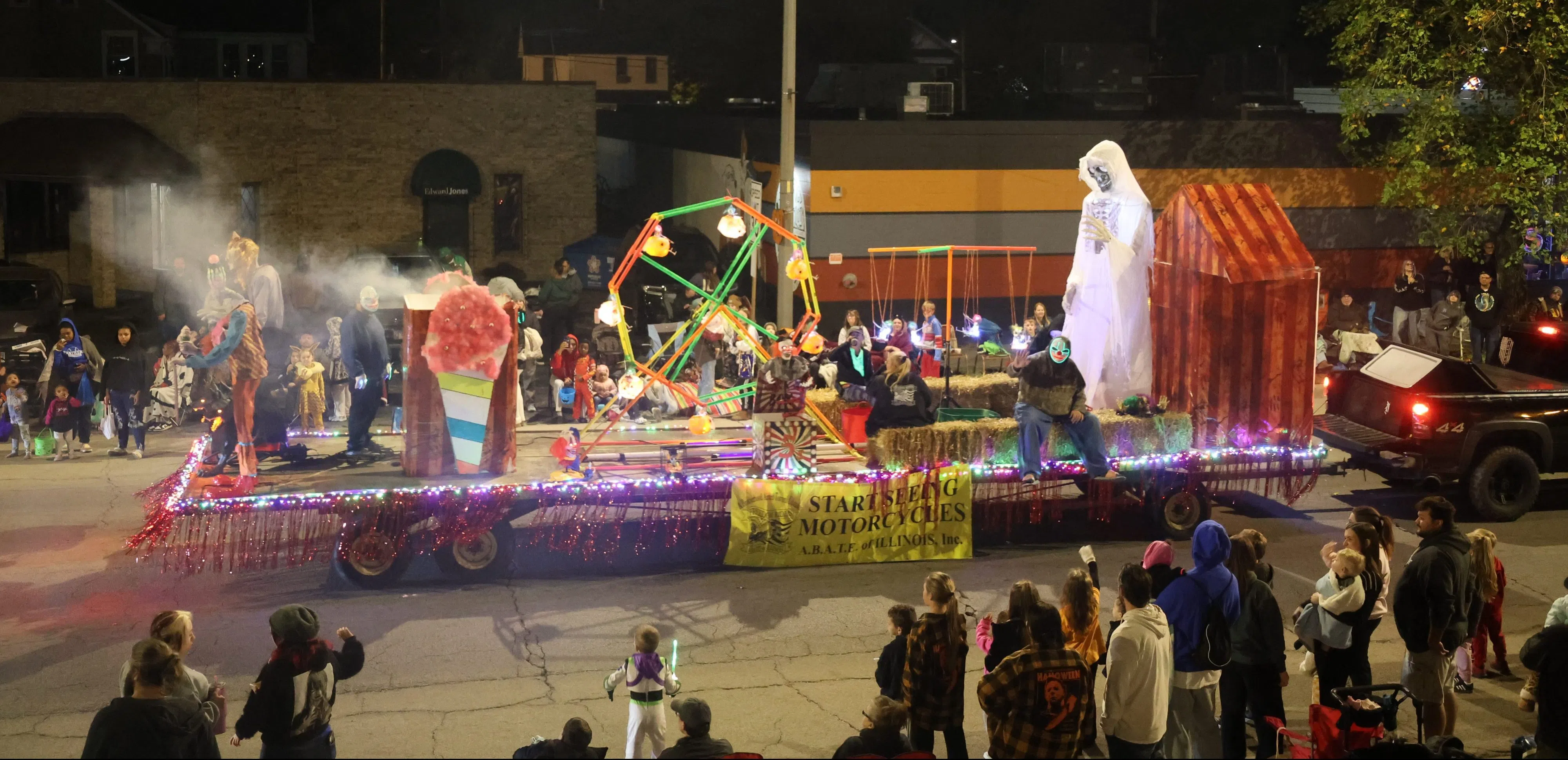 in the civic division, ABATE of Illinois was first with their float ‘Ice Cream, You Scream Haunted Carnival’ and Centralia Firefighters Association Local 618 was second with ‘Zombie Fire Crew’.