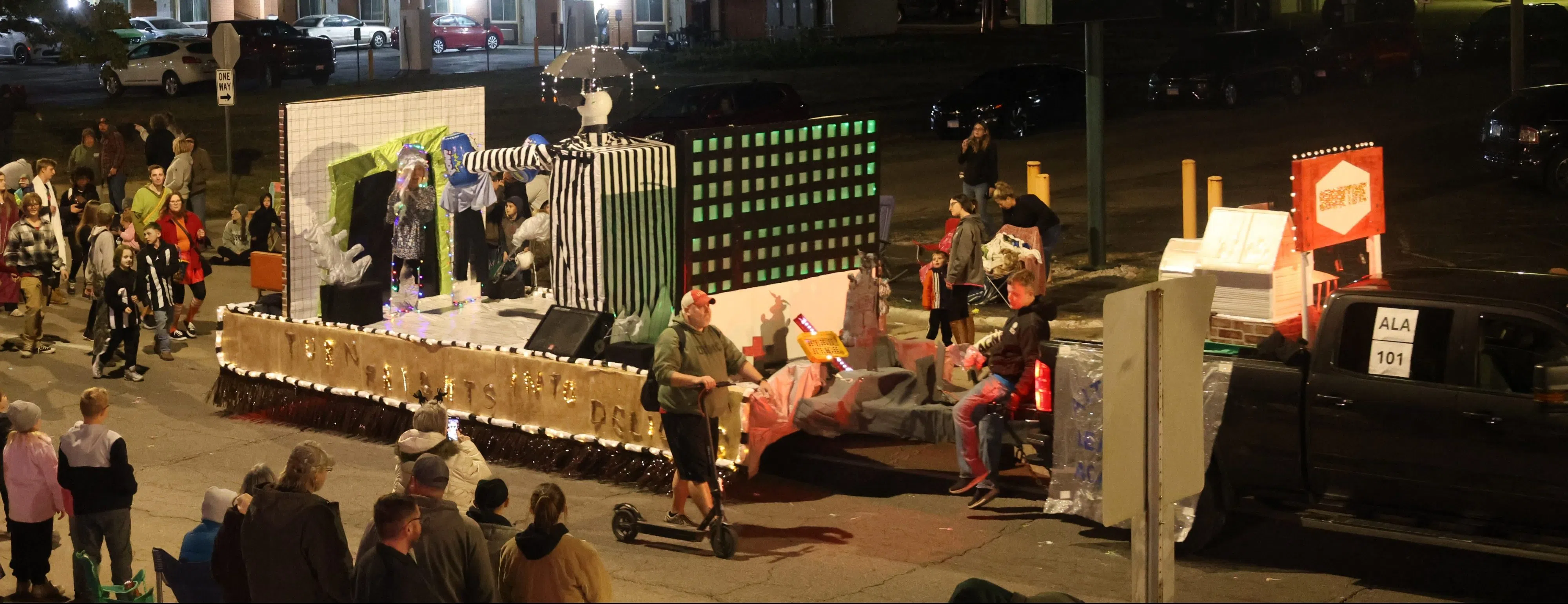 The Jolliff Family’s float, ‘Trolls,’ won the coveted Harley Queen Trophy, and the Timmons Family’s entry, ‘Carnival of Frights, ‘ won the Grand Marshals trophy in the 98th Halloween Parade held Saturday night. The Alternative Learning Academy’s entry, ‘Showtime at the ALA,’ won the George Borum Award for most closely following the theme and first in the school division. Competition was stiff, as the more than 100-unit parade included 37 floats.