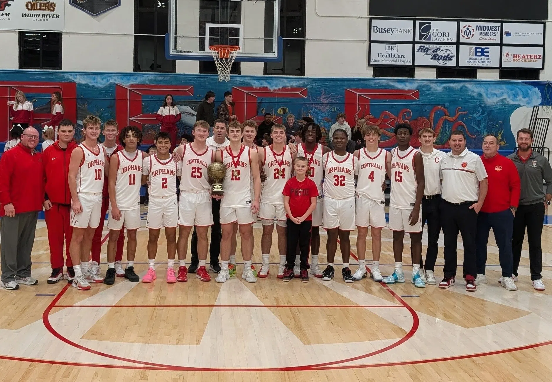 The Centralia Orphans have won the Roxana Hoopsgiving Tournament for the 5th straight year as they dispatched of University City last night 77-41.  Tournament MVP Archie Goewey led Centralia with 17.  Devin Meier and Kenny Bratton, who also made the All Tournament Team, finished with 13 and 12 respectively and Jaxson Hancock added 10.  The Orphans travel to Althoff on Friday and then will host Mattoon for their home opener Saturday night.
