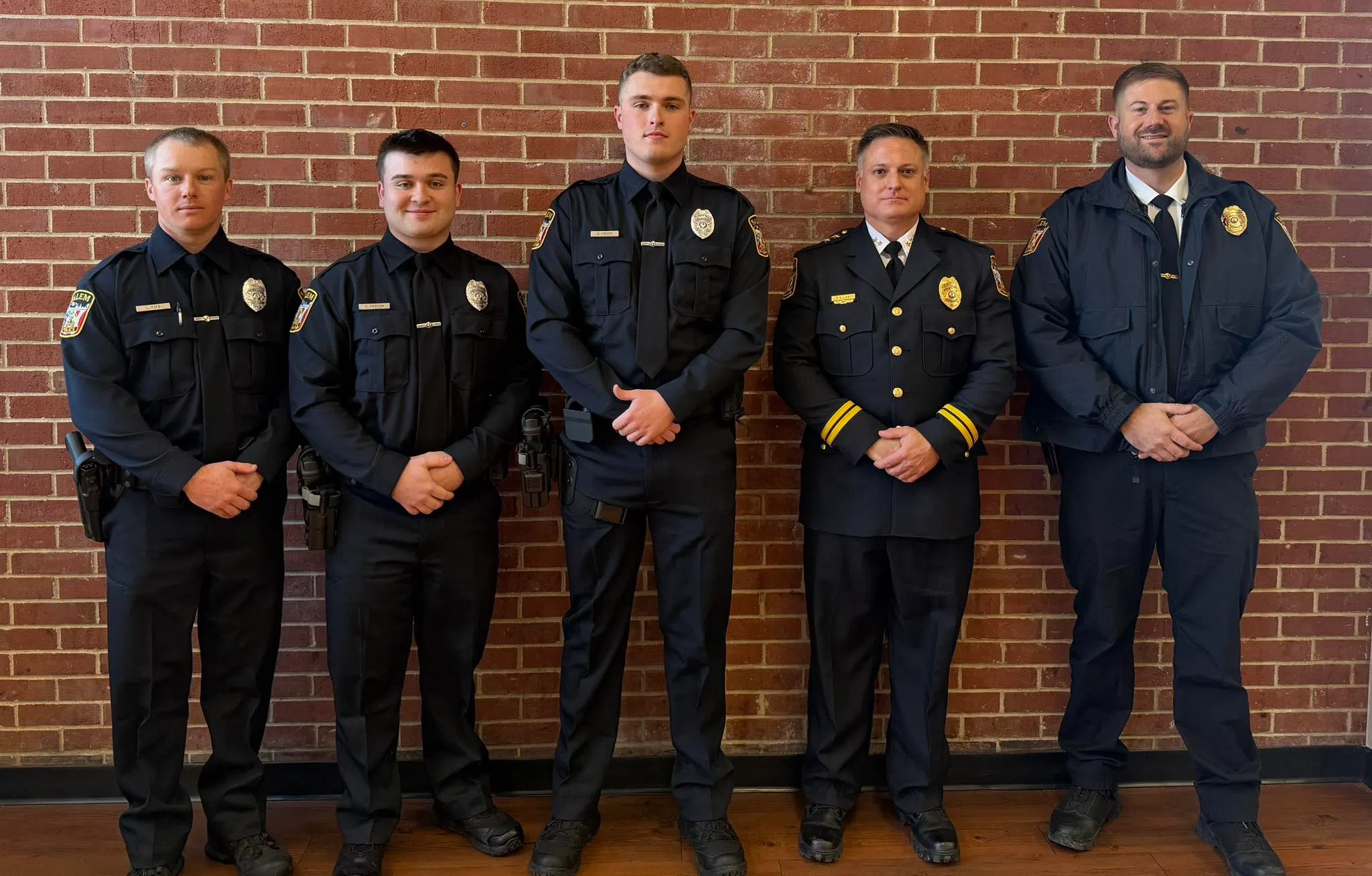 Patrolmen Dylan Friend, Landon Tate, and Cory Crouch still have to complete their field training with other department officers before being released to patrol on their own.