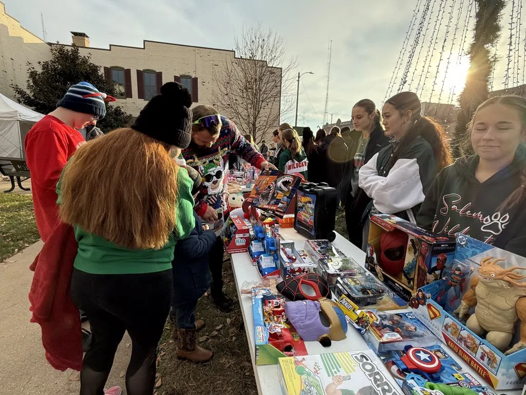 Families pick out toys at Christmas on Broadway. Photo by Bruce Kropp.
