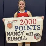 TTown beat St Anthony in the Rivalry Clash at TTown last night on a very special night 45-40. After the game, TTown coach Laurie Thompson was honored for win #500 she achieved last time out in a win over Olney. Also during the game, St Anthony standout Nancy Ruholl became the first basketball player, boy or girl at St Anthony, to get to 2000 career points as she scored 29 in the loss.