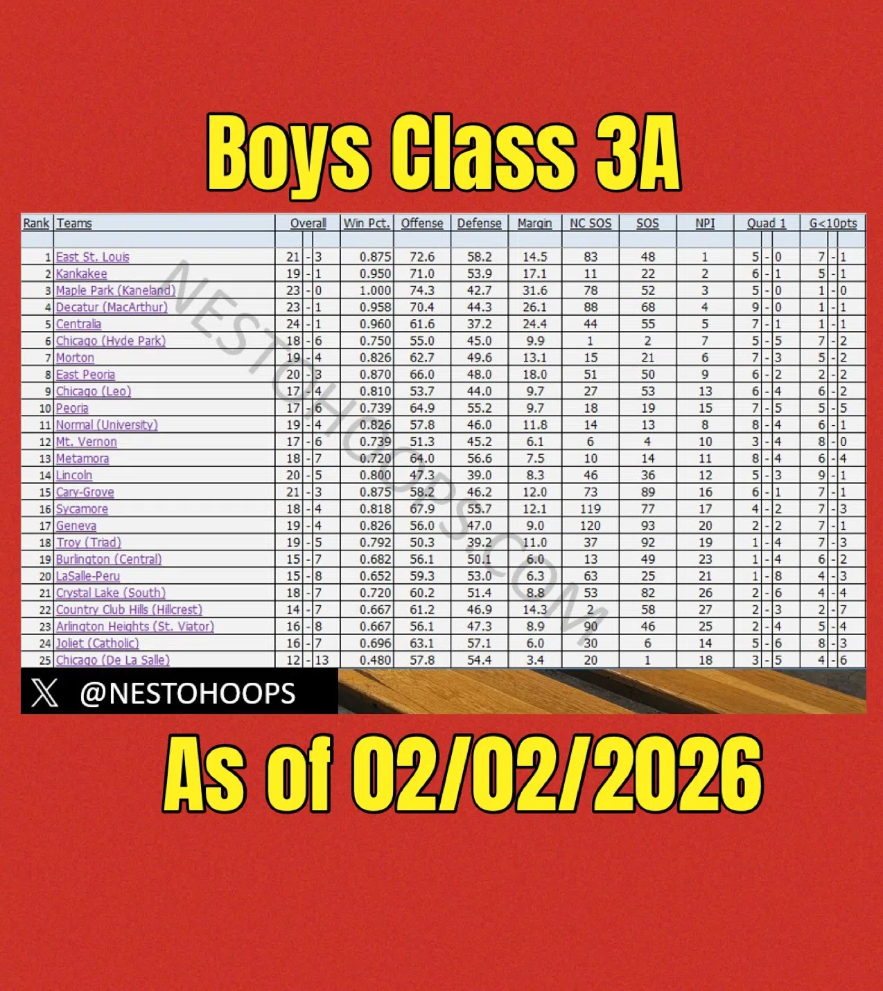 East St Louis is still #1 in 3a with Centralia 5, Mt Vernon 12 and Triad 18.