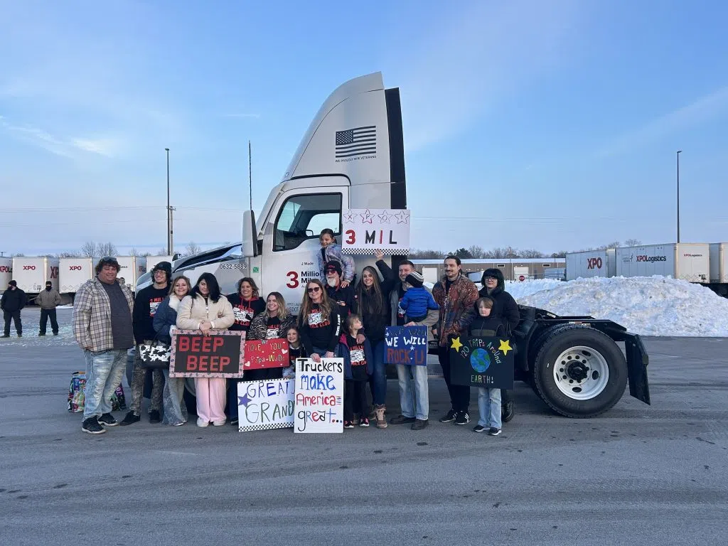 Jerry Wade gathers with his family around his new truck, honoring being accident-free for 3 million miles. Photo by Bruce Kropp.
