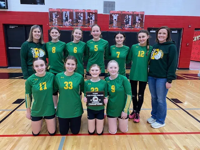 Patoka won the Franklin Park 7th Grade Volleyball Tournament on Saturday. They went 6-0 (in sets) on the day. They beat Franklin Park 25-17, 25-18, Centralia 25-10, 25-12, & Flora 25-9, 25-7.