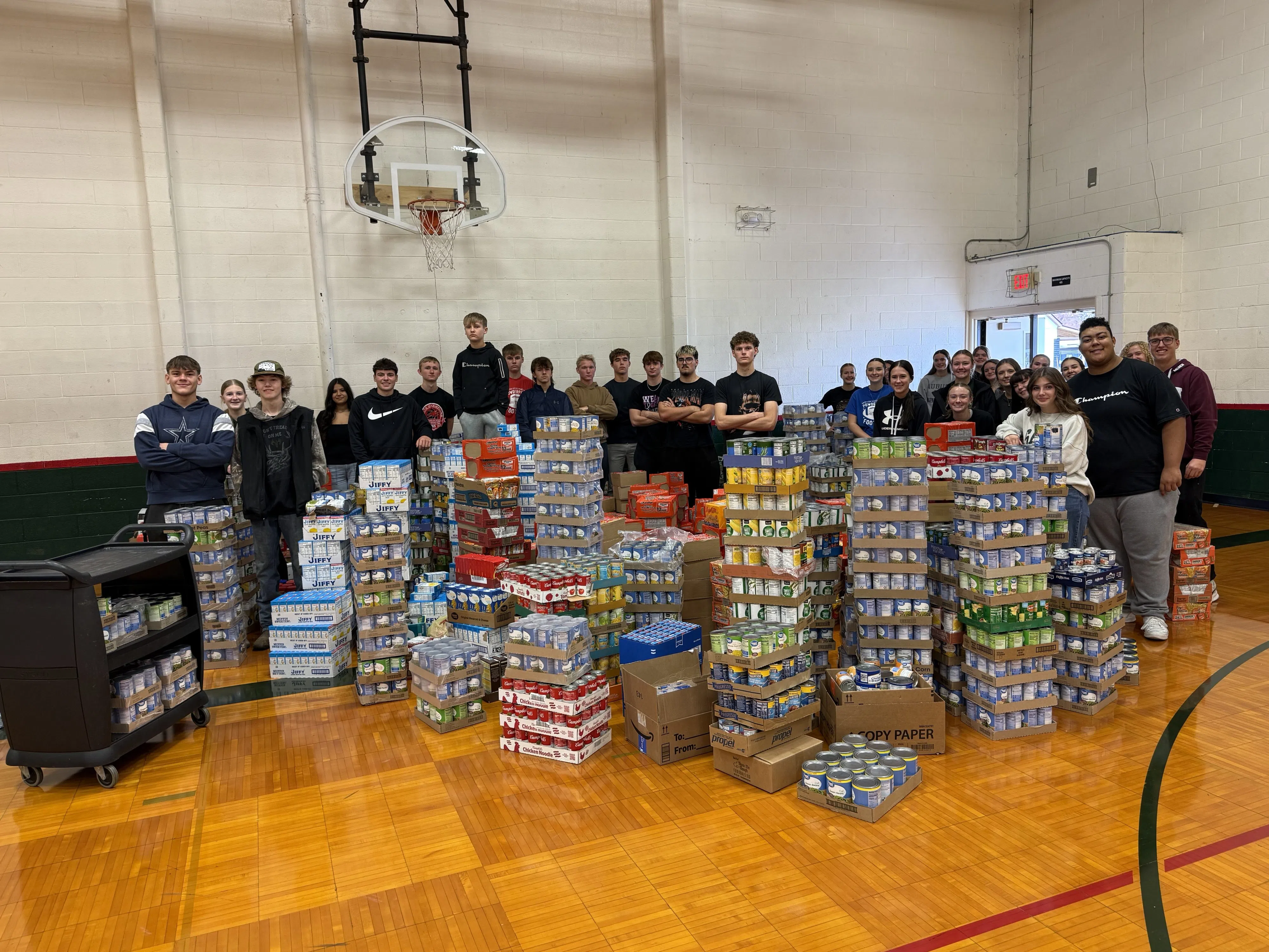Austin Williams Nov 18, 2025 Student Council and NHS students stand with food collected in the food drive. Photo by Bruce Kropp.