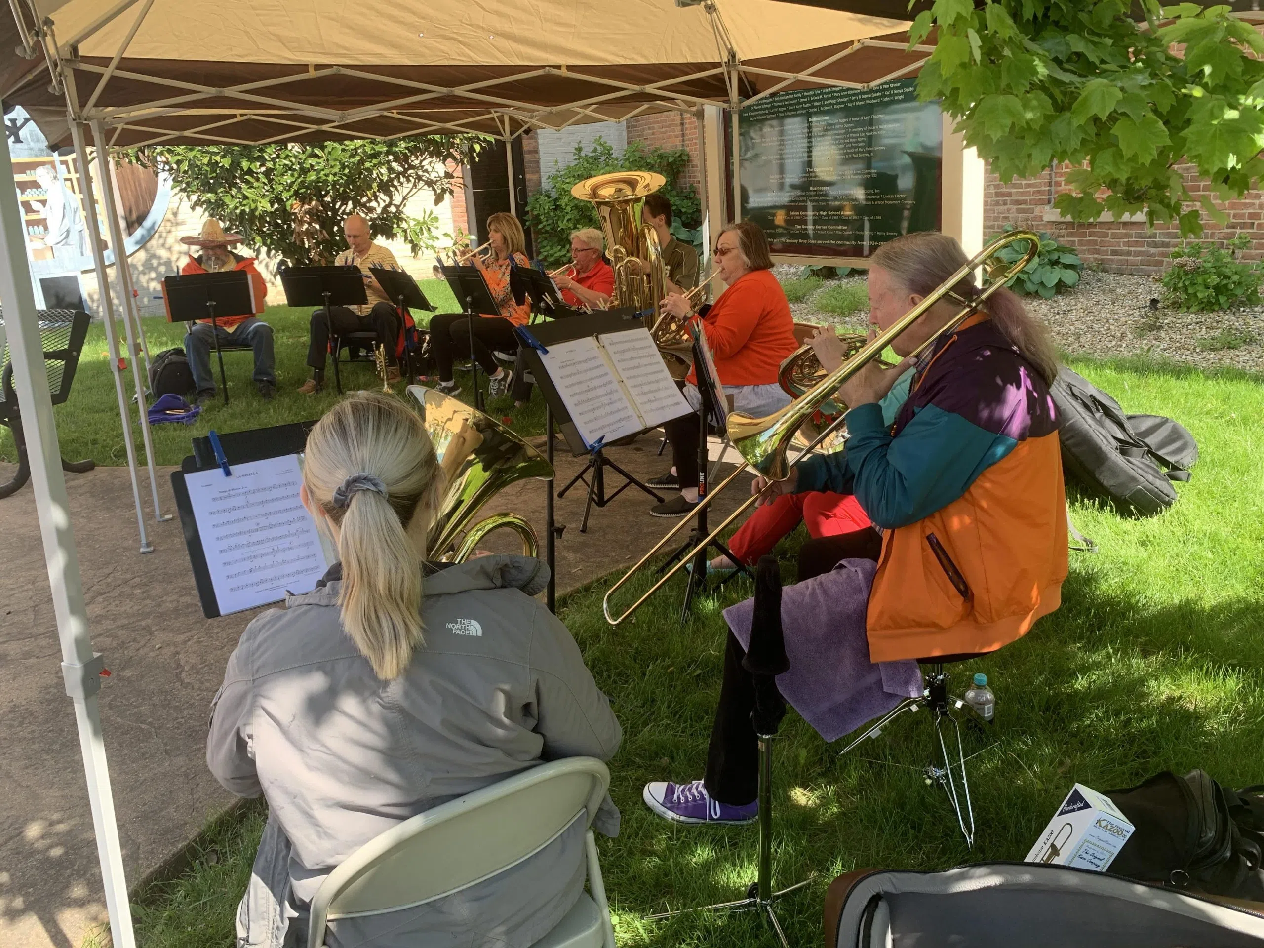 Bruce Kropp May 05, 2021 The nine piece Little Egypt Brass Band entertains a crowd Wednesday afternoon with a Cinco de Mayo themed concert. Photo by Bruce Kropp.