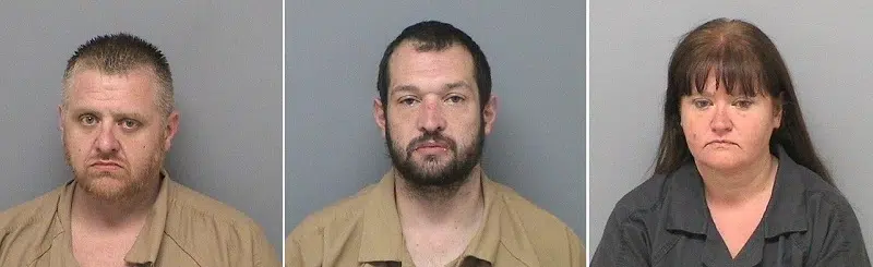 Three arrested on drug charges following a bust on home at 12,224 East Idlewood Road in Mt. Vernon. (Left to right) Jonathan Hampton, Lewis Mangan, and Jackie Pauley. Three people have been arrested o...