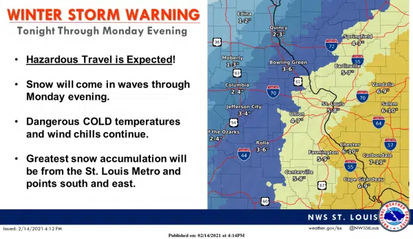 National Weather Service issues winter storm warning until midnight Monday night
