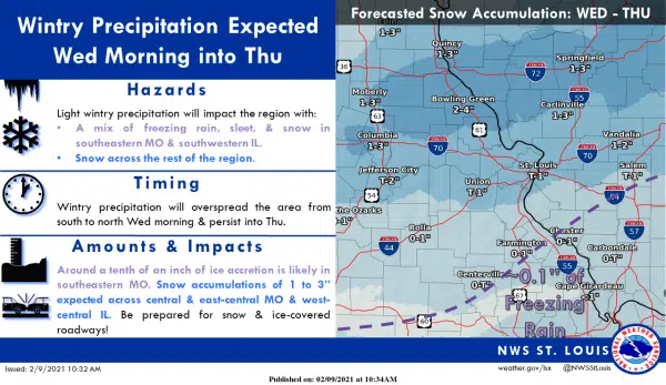 The National Weather Service has issued a Winter Weather Advisory for South Central Illinois from midnight Tuesday night through six Thursday morning. Mixed precipitation expected. Total snow accumula...