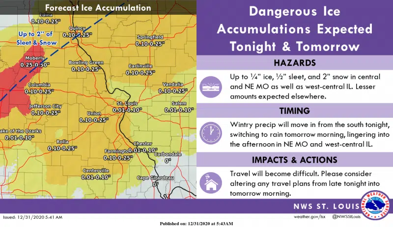 A winter weather advisory has been issued for South Central Illinois from nine New Years Evening through noon New Years Day. The National Weather Service says rain or freezing rain will begin late thi...