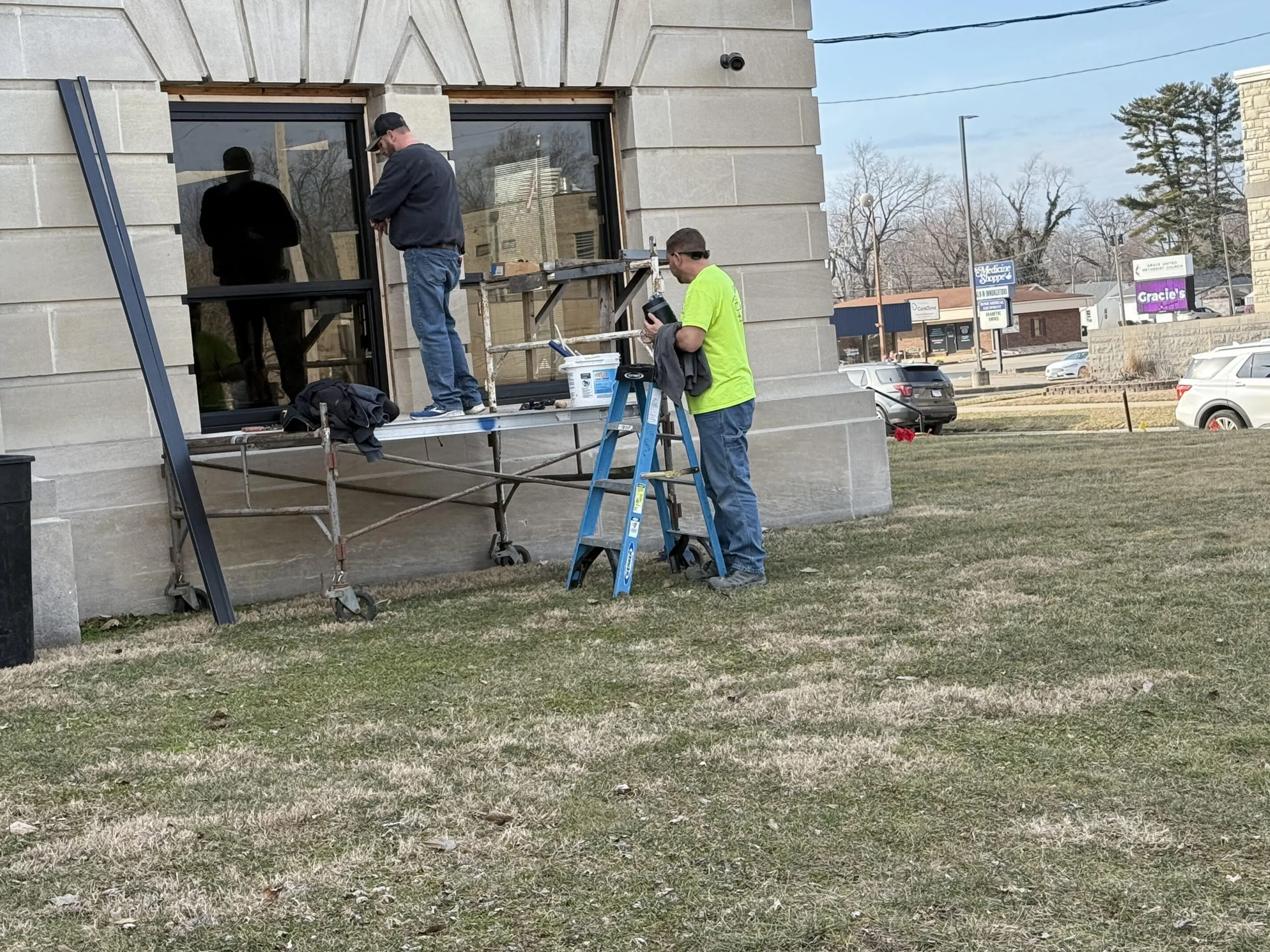 Austin Williams Feb 26, 2025 Window replacement work in progress at the Marion County Courthouse. Photo by Bruce Kropp.