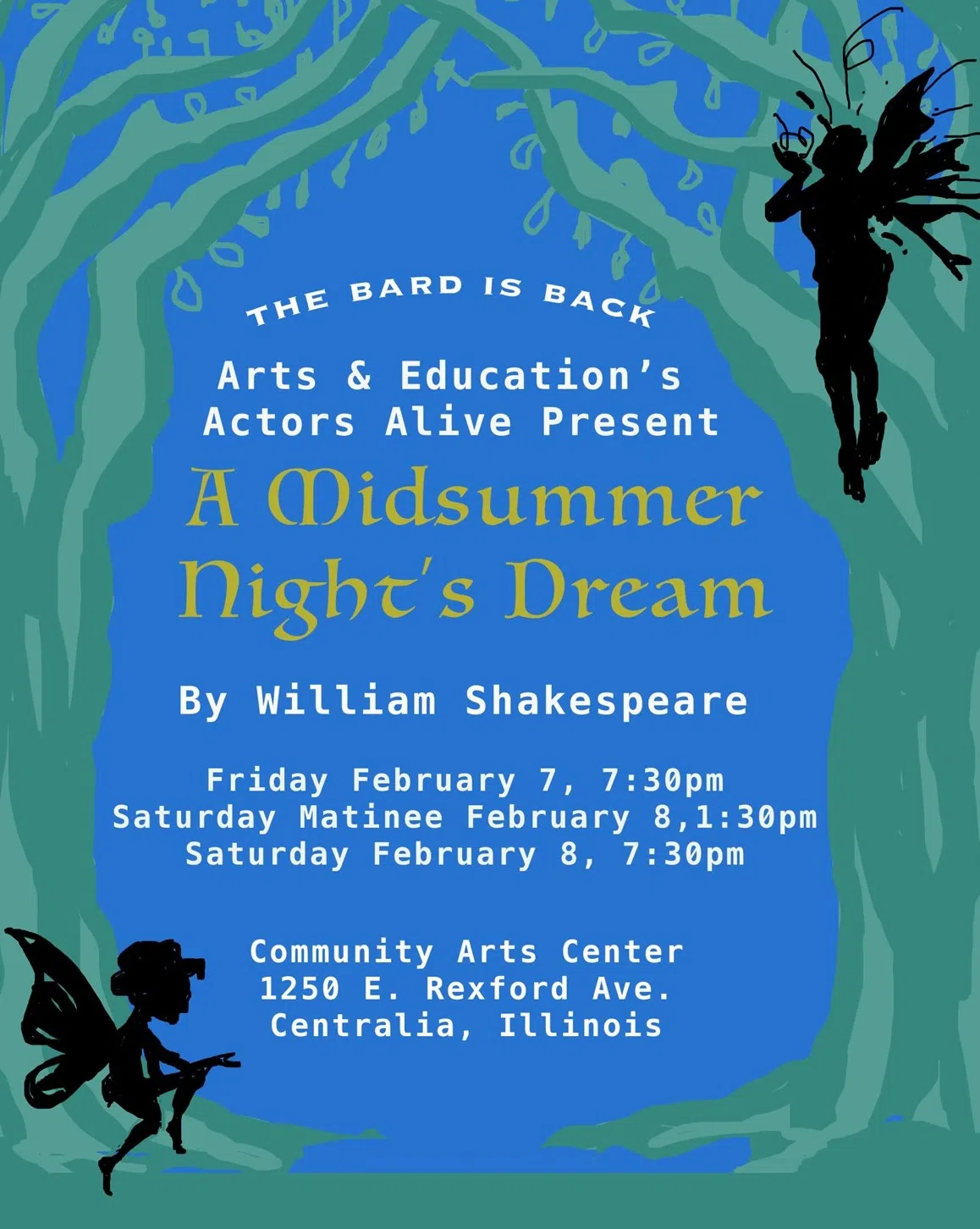 The Centralia Cultural Society is staging Shakespeare's A Midsummer Night's Dream this Friday and Saturday. The show's cast of eighteen people are members of Actors Alive, an adult acting class at the...