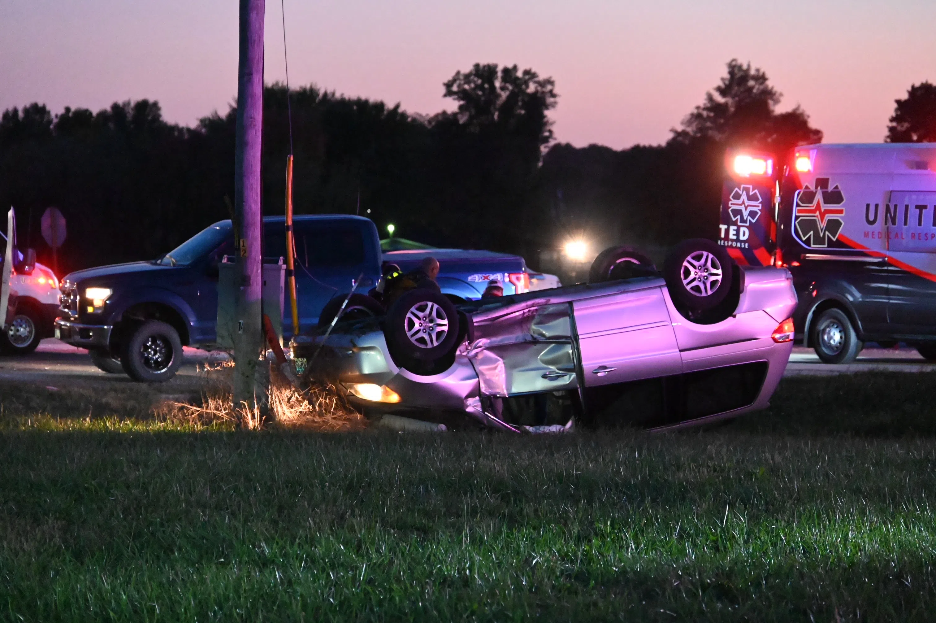 Austin Williams Nov 07, 2025 Overturned vehicle at the crash on Walnut Hill and Airport Road. Photo by Tim Ferguson.
