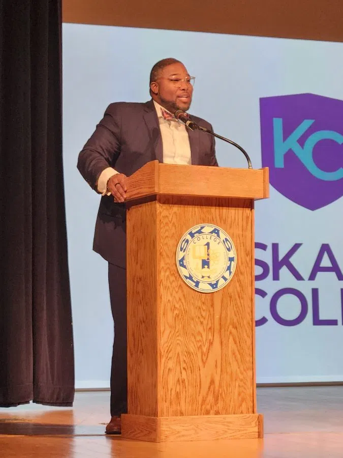 Austin Williams Jan 22, 2026 Dr. Tron Young speaks in Jane Knight Auditorium for Kaskaskia College's Martin Luther King Day Celebration. Photo by Austin Williams.