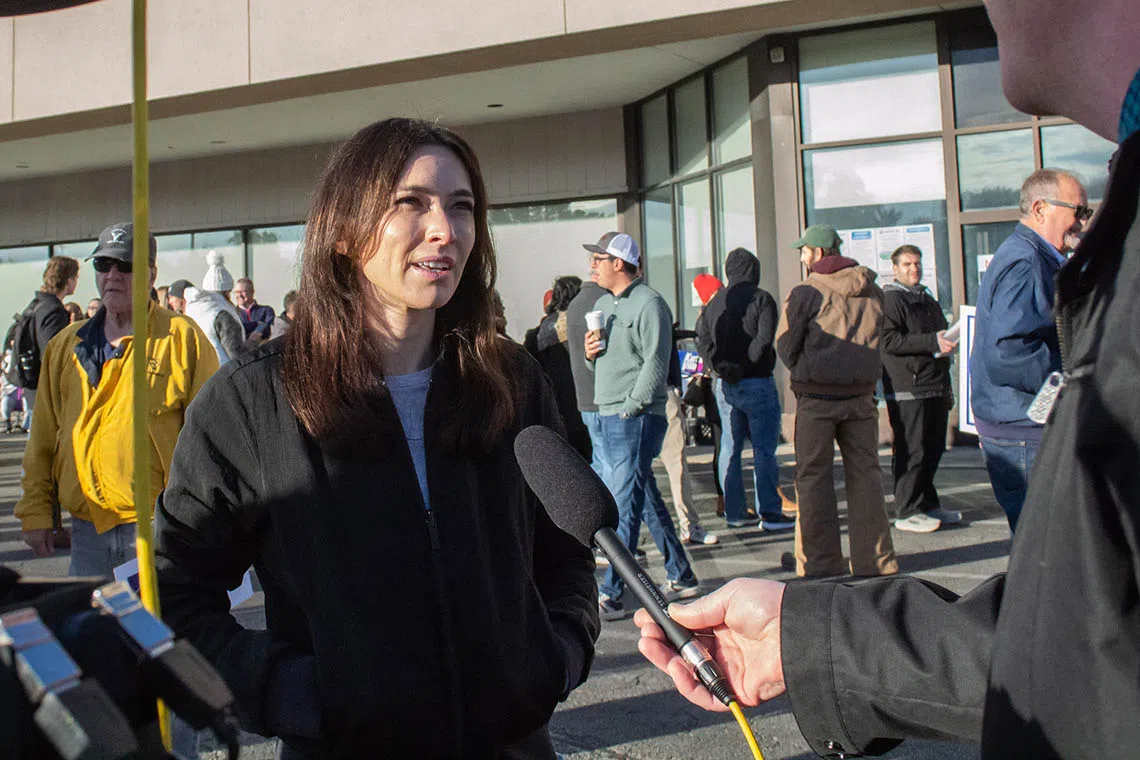 Austin Williams Oct 28, 2025 State Rep. Margaret Croke talks to reporters outside the Illinois State Board of Elections building in Springfield on Monday, Oct. 27, as she waits to file her petitions to run for comptroller. (Capitol News Illinois photo by Jerry Nowicki)