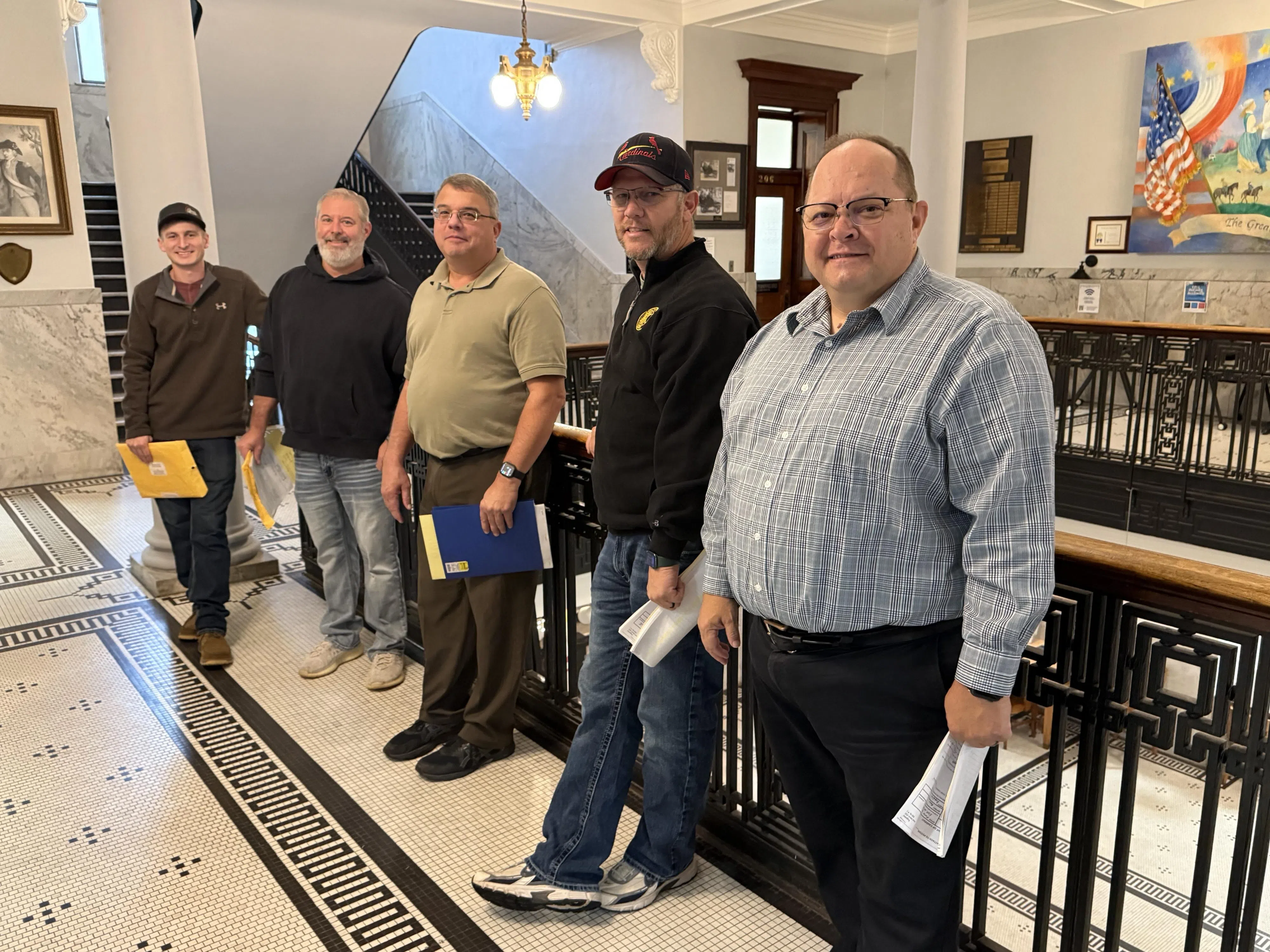 Austin Williams Oct 28, 2025 Candidates line up at the courthouse Monday morning to file for the March primaries. From left to right: Zach Rose, Josh Dunahee, Gary Purcell, Kevin Cripps, and Greg Wright. Photo by Bruce Kropp.