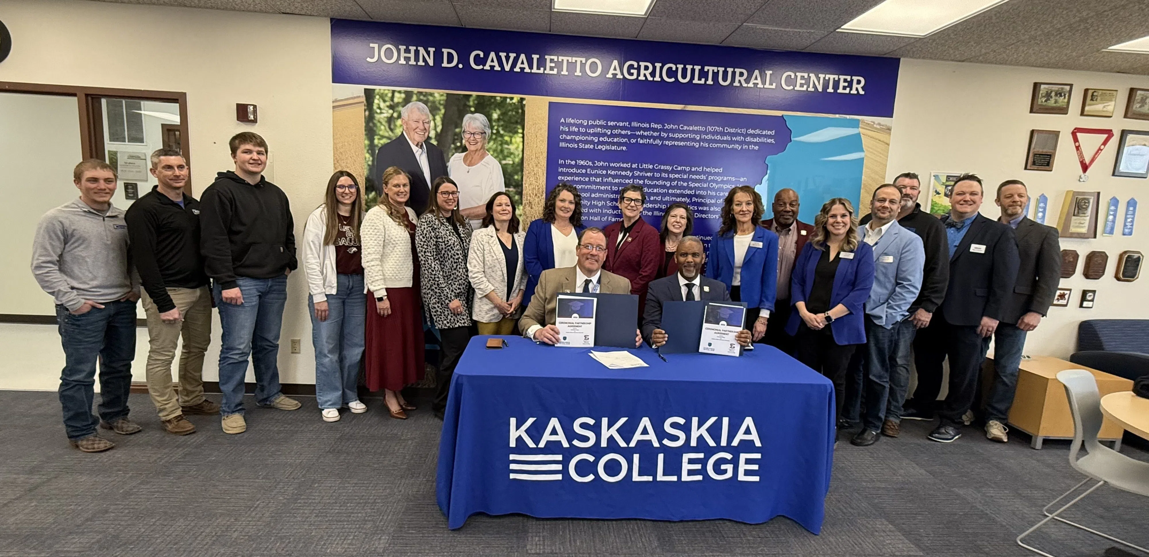 Austin Williams Feb 25, 2026 The agriculture degree partnership between KC and SIU is signed at the John D. Cavaletto Agriculture Center. Photo by Bruce Kropp.