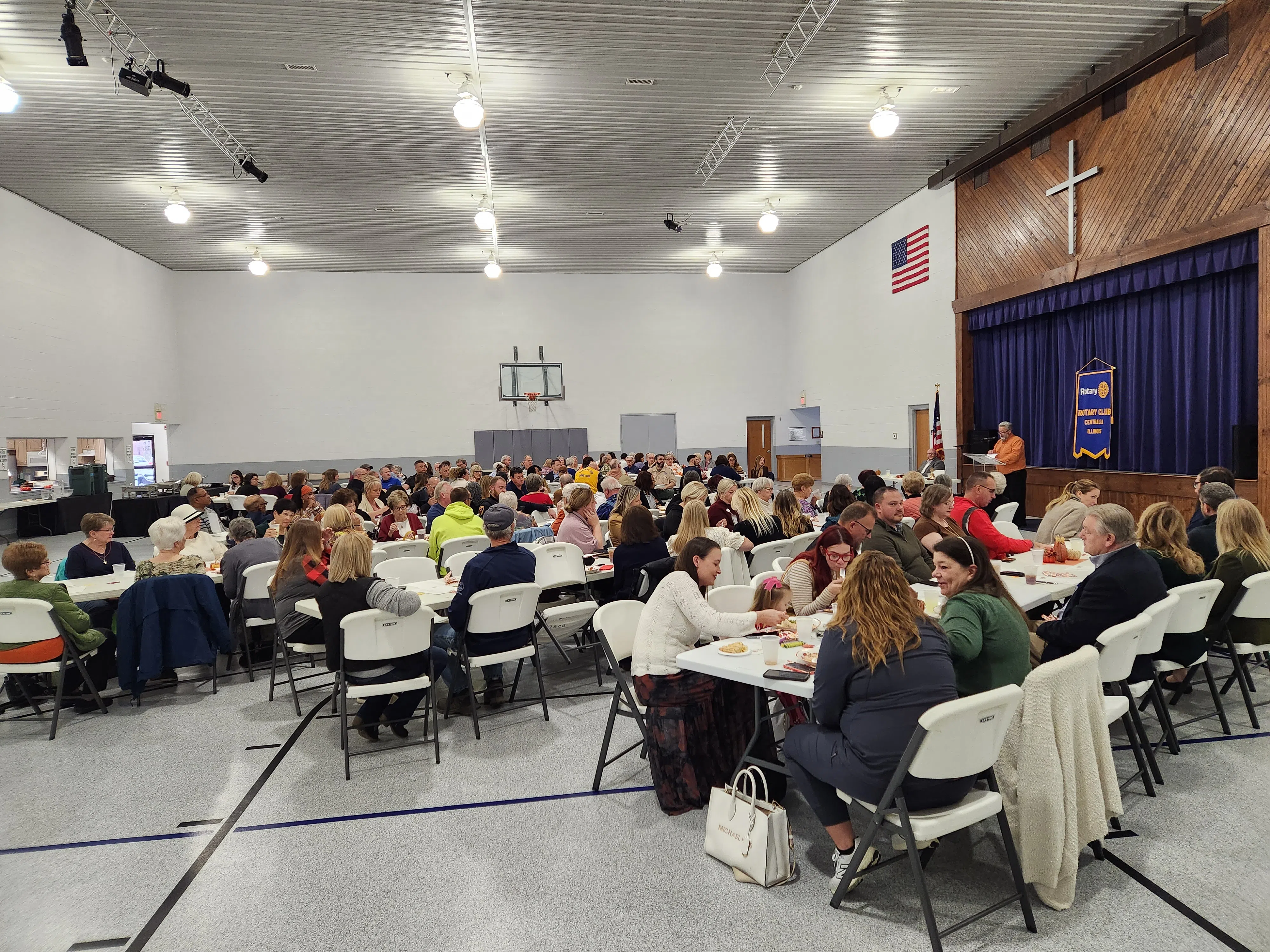 Austin Williams Nov 25, 2025 Guests gathered for the Rotary Civic Luncheon in the Calumet Street Church gymnasium. Photo by Austin Williams.