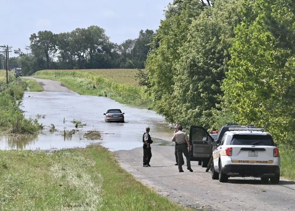 Bruce Kropp Aug 29, 2022 This car became stalled in high water across the Copple Road southeast of Centralia Monday morning. The driver was helped to dry land by neighbors. Photo by Tim Ferguson.