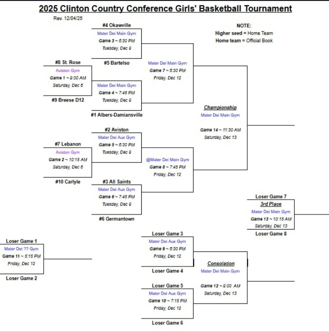 Today is the final day of the Clinton County Conference Girls Basketball Tournament. The day begins at 9am with the consolation finals between Bartelso and Germantown. Then Albers/Damiansville will pl...