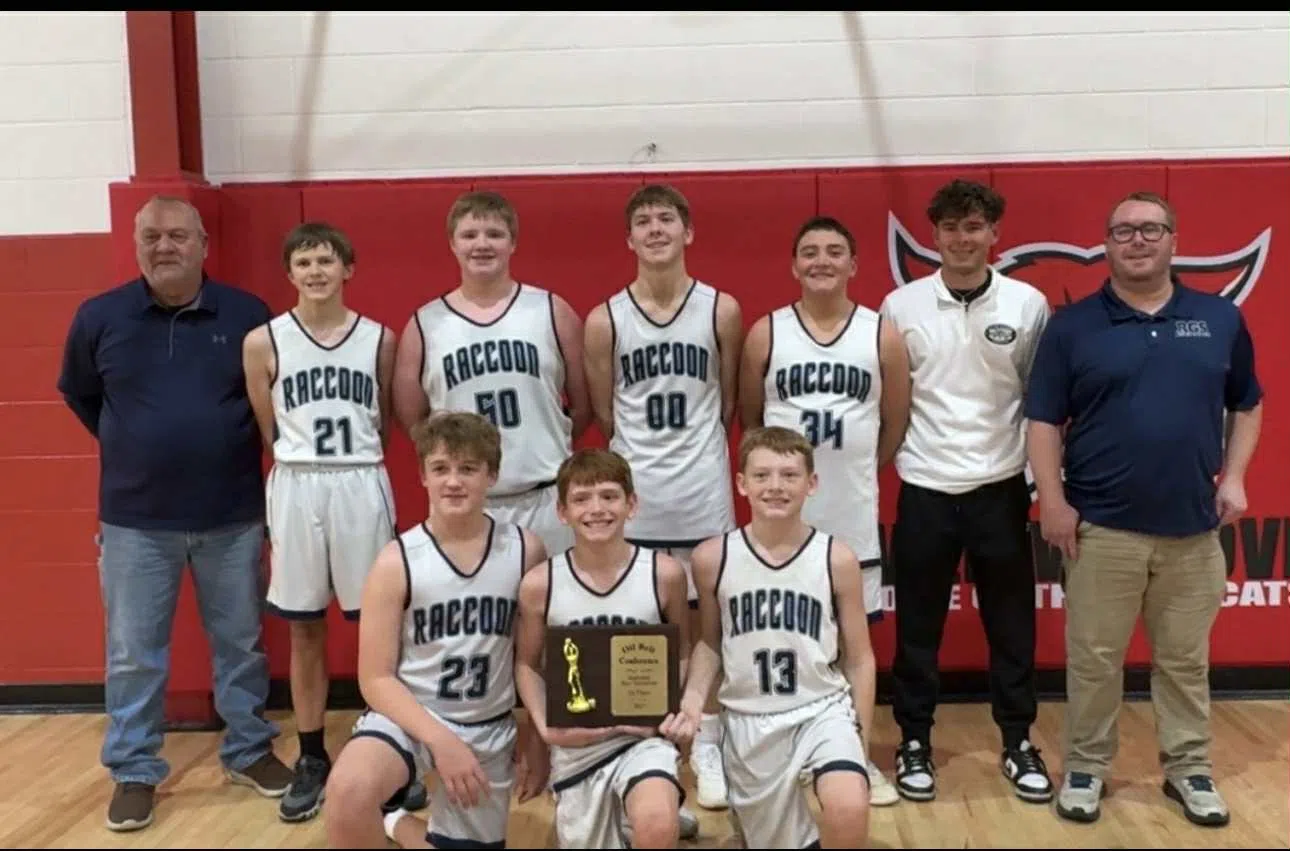 The Oil Belt Conference Tournament finished up at Willow Grove last night. Top seed Raccoon won the title, beating Odin 58-31. John Organ had 23 in the win, Jack Schaeffer 14 and Keegan Brammeier 10. ...