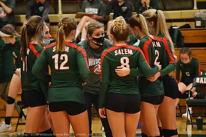 (Photo by Greg Maxey) The Salem Lady Cats volleyball team dropped to 3-6 overall with their 25-12, 25-18 loss to visiting Freeburg in Cahokia play. The night started with the freshmen losing 21-13, 21...