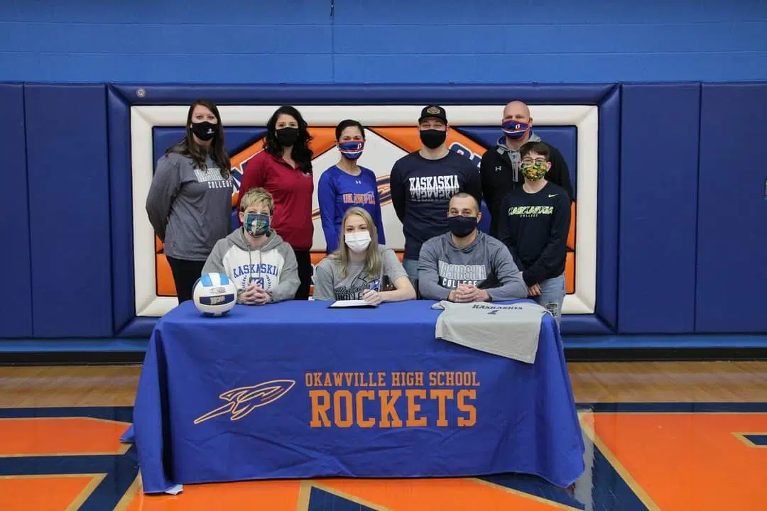 Congratulations to Okawville senior Bella Auer who signed a letter of intent to continue her education and volleyball career at Kaskaskia College.